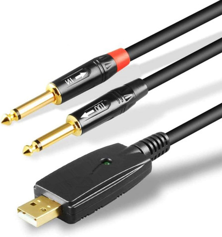 Fabriek Inbouw Goede 3 Meter Usb Naar Dubbele 6.35Mm Jack Mannelijke Kabel Mic Ruisonderdrukking Opname Live Stream Gitaar Audiokabel